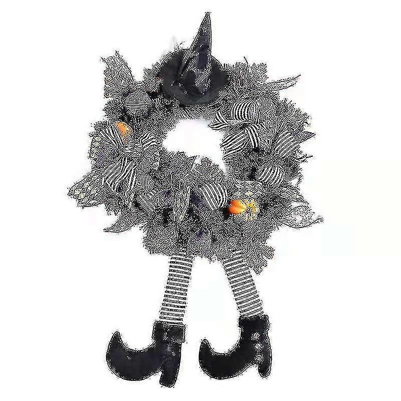 Halloween Wreath Decorations Halloween Witch Wreath With Hat Legs Pumpkin Artificial Front Door Wrea