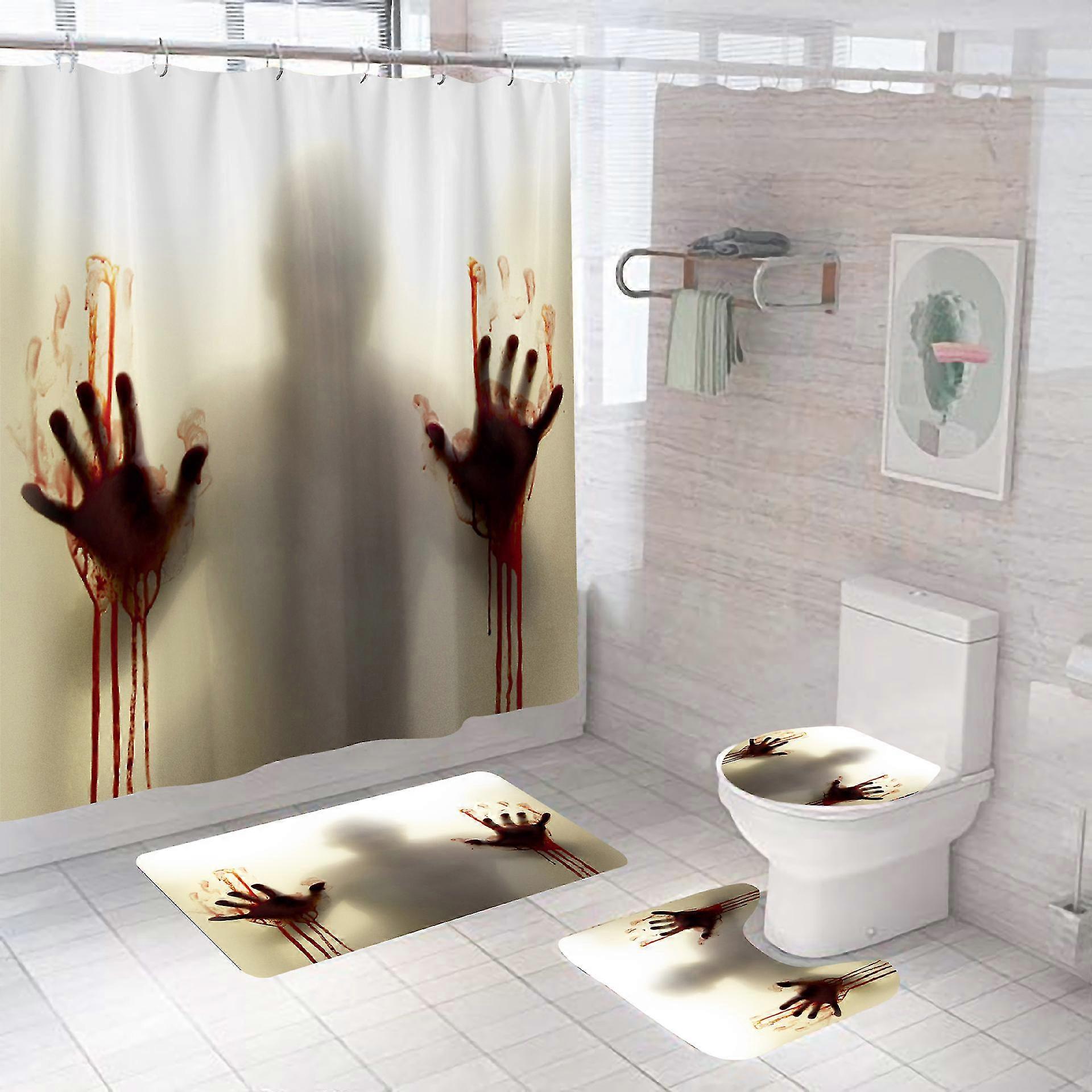 Halloween Bloody Handprint Shower Curtain Sets, Halloween Bathroom Decor Set 71 inch x 71 inch - Shower Curtain with Mat, Toilet Lid Cover, Bath Mat -