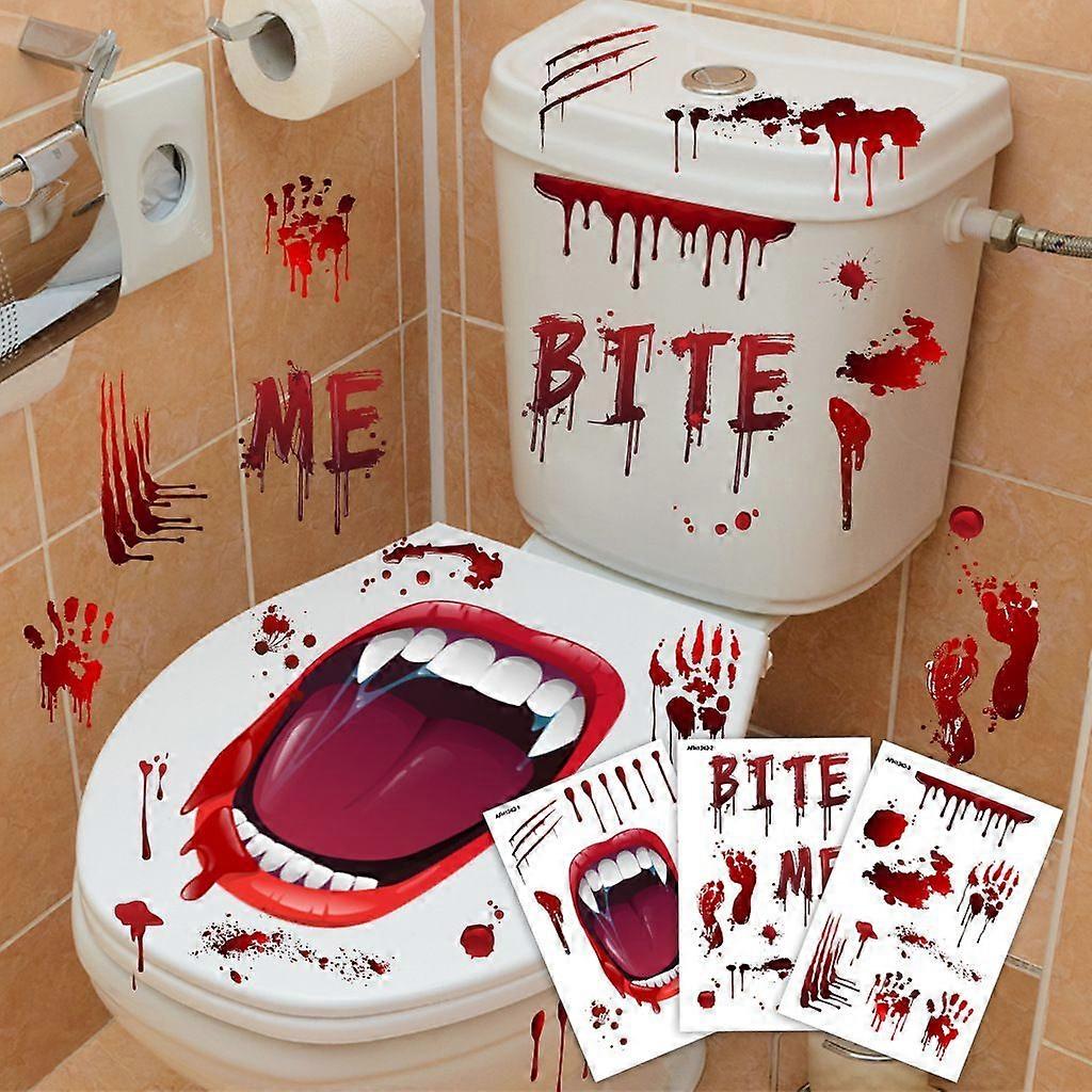 Halloween Bloody Handprint Footprint Window Stickers 3pcs Wall Stickers for Halloween Party Decorations Inside Outside Decor Come with Plastic Scraper