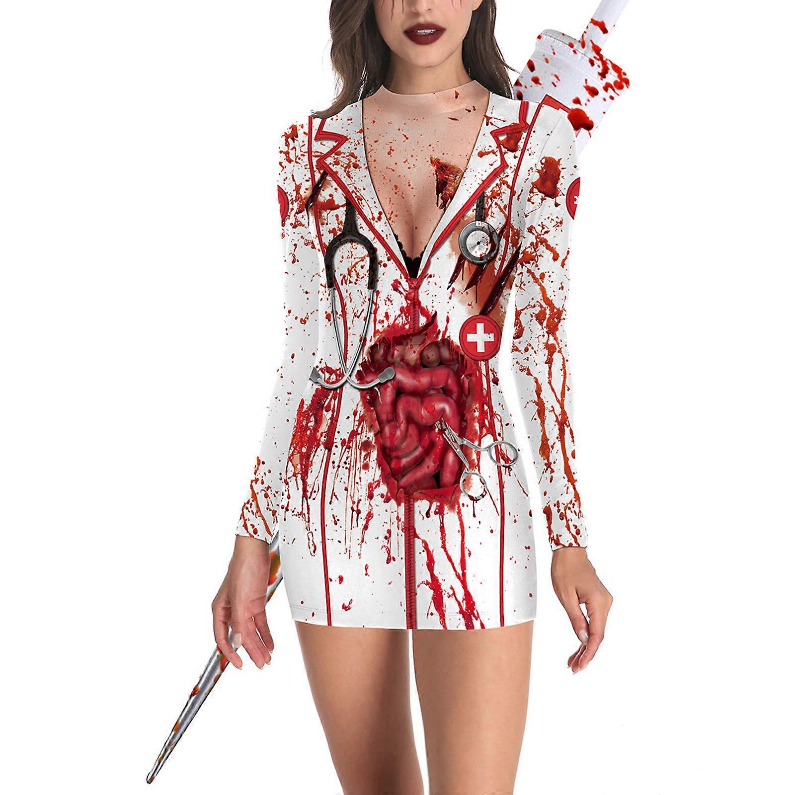 Halloween Bloody Nurse Costume Dress Outfit Nurse Cosplay Dress up for Womens Halloween Costumes Clothing WB143003 XL