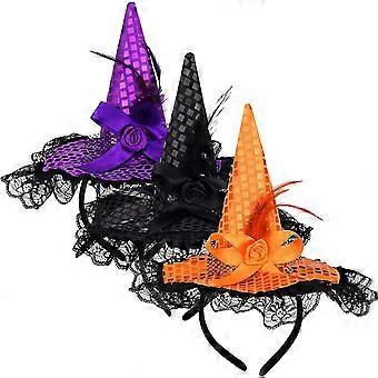 3 Pieces Halloween Witch Hat Halloween Feather Witch Headband For Halloween Costume Dress Accessories, 3 Colors
