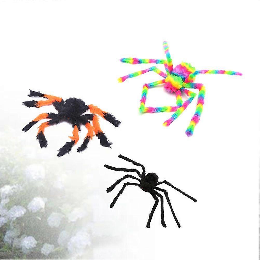 3pcs Spider Toy Stuffed Animal Plush Toy for Halloween Decorations Props (1pc 30cm Black Spider +1pc 30cm Flower Spider (Random Color) +1pc 50cm Multi