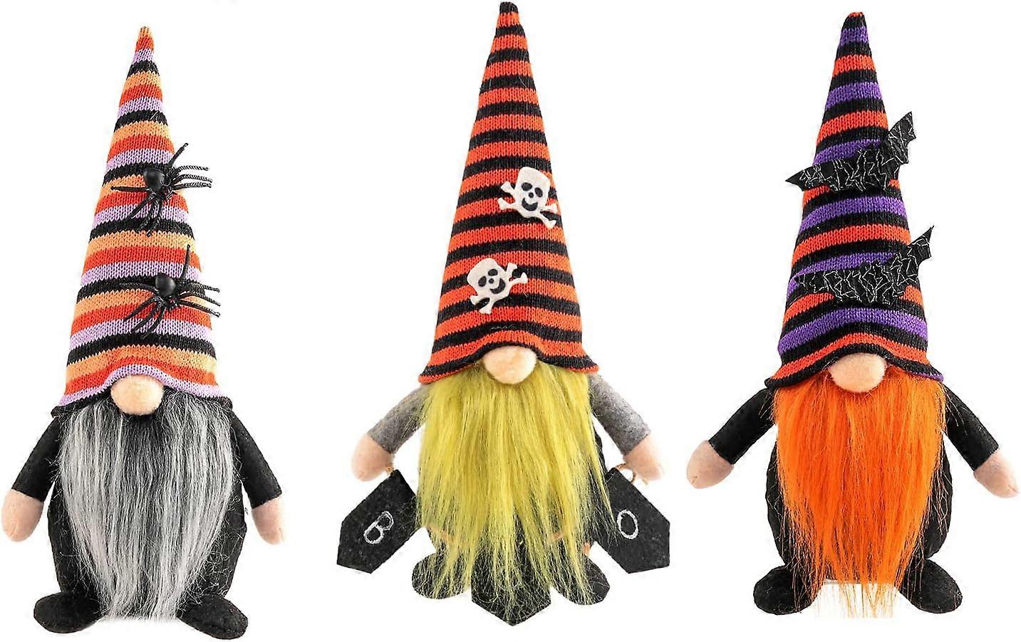 Halloween Decoration Gnome, Halloween Gnome with Bat Spider and Skeleton, 3 Pieces Plush Gnome Halloween Party Decorations, Gifts for Girls and Boys