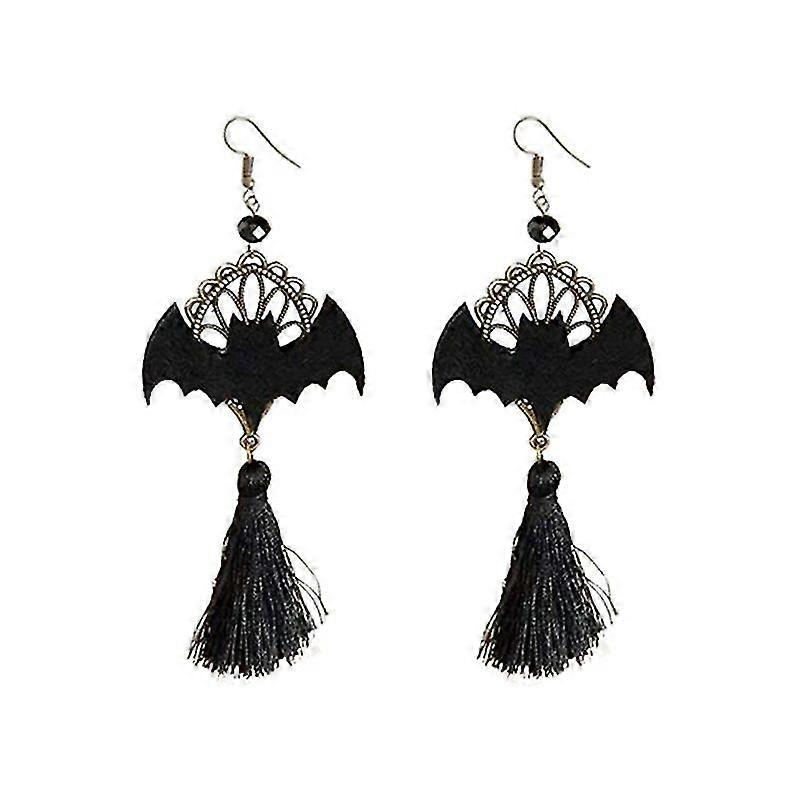 Halloween Decor Bat Earrings, Womens Girl Vintage Gothic Fashion Long Tassel Bat Earrings Hook1pair-black