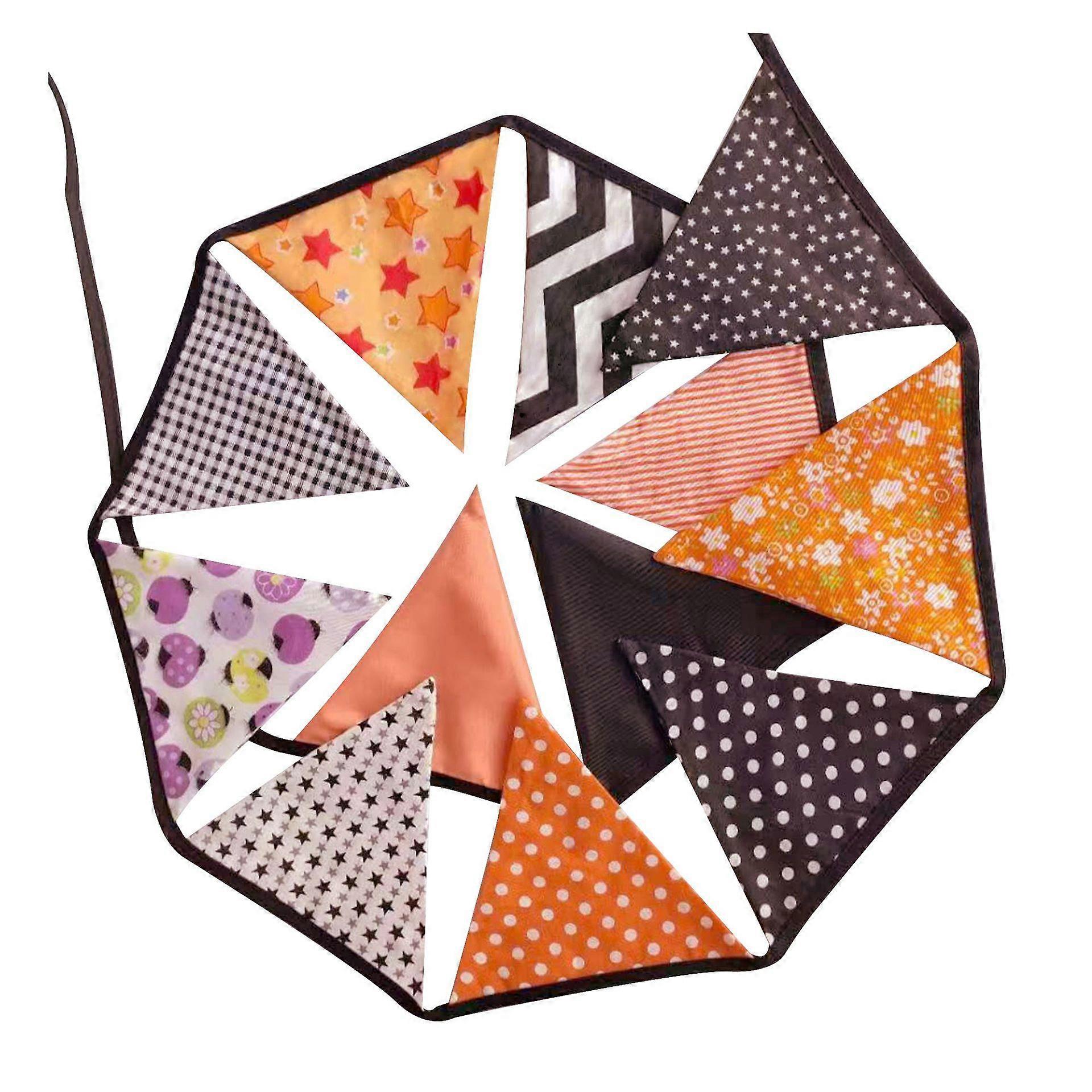 Halloween Decoration Banners Vintage Cotton Fabric Buntings Garlands Pennant Flag for Birthday, Wedding, Outdoor, Indoor Activity, Party Hanging Deco