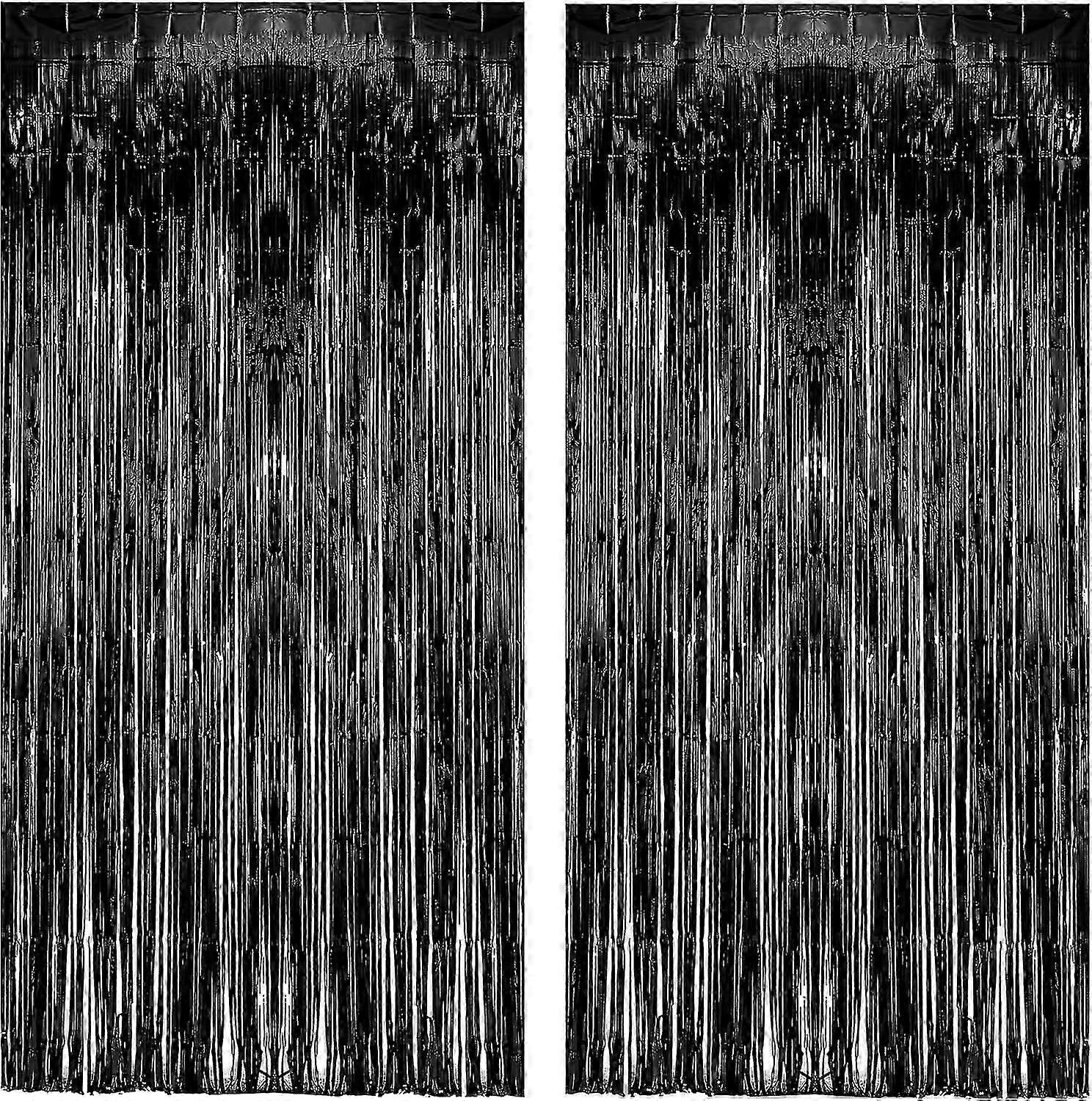 Birthday decoration Halloween decoration streamers pack of 2, 1m * 2.5m tinsel curtain with foil fringes. Wide application: This birthday streamer background is perfect for Halloween, birthdays, party photo background, Hollywood, rock' n'Roll, Photo Booth, Forty, Prom, Medieval, Burlesque, Death to my 20s, Cocktail, Graduation, Music, Mafia, Horror, Poker, Doctor, Christmas Party, Merchandise, Ceremony, Stage Backdrop, Middle Ages, Disco, Paris, etc. Sparkle and bling definitely create a shiny, beautiful atmosphere for your party. Easy to use: Tear off the back of the tape and stick this party curtain on the top of the wall, window, table, door or anywhere you want to light up your party. You have the choice of hanging each individual curtain decoration in different places or double layering for a fuller effect. Material: This party curtain photo backdrop is made of tinsel with a shiny surface. This shiny foil curtain wall fits well in a doorway or hangs a few side by side on the wall to create a shimmering streamer curtain. Black birthday party decorations.