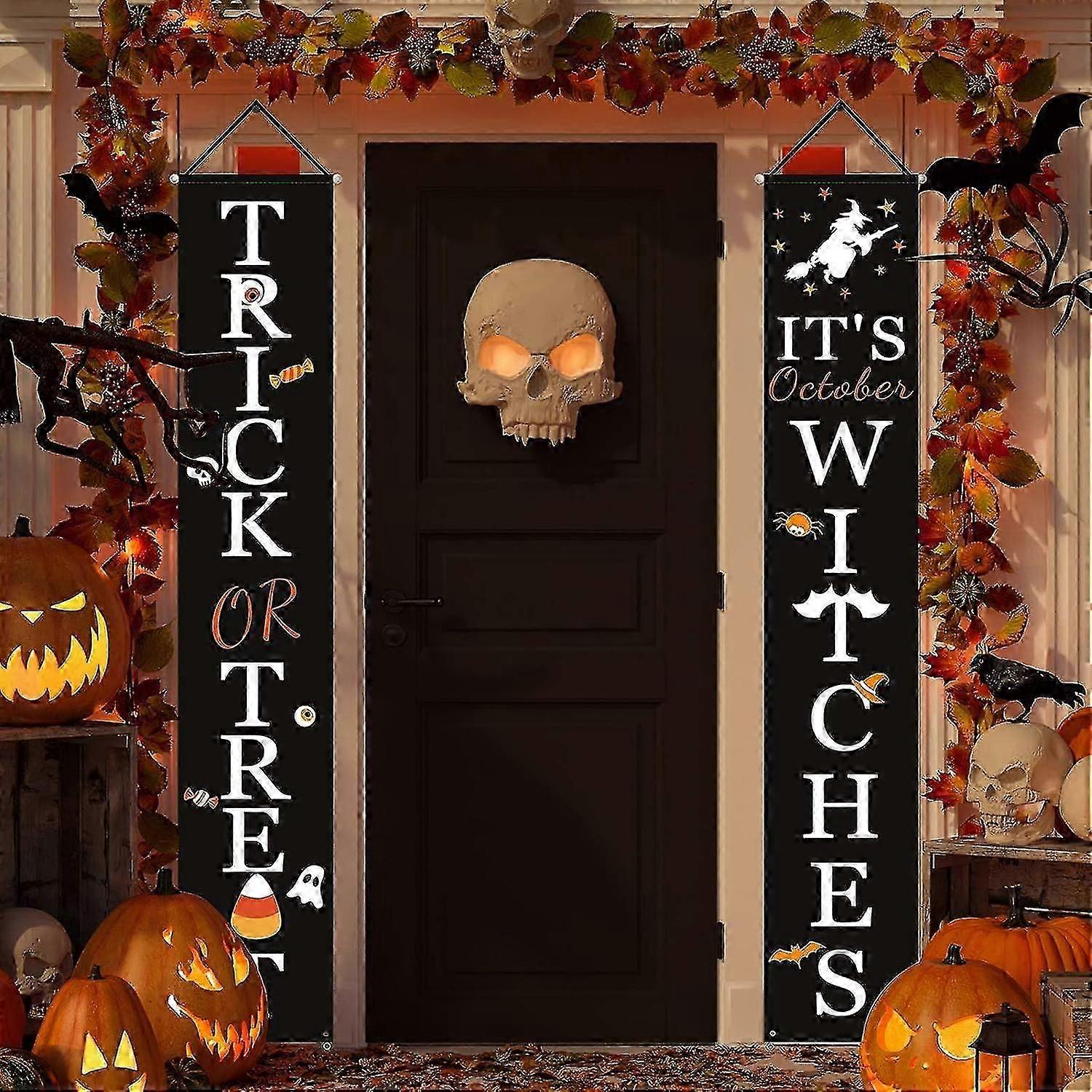 Halloween Decorations Outdoor | Trick Or Treat & It's October Witches Front Porch Banners For Halloween Porch Decor | Halloween Decorations Indoor