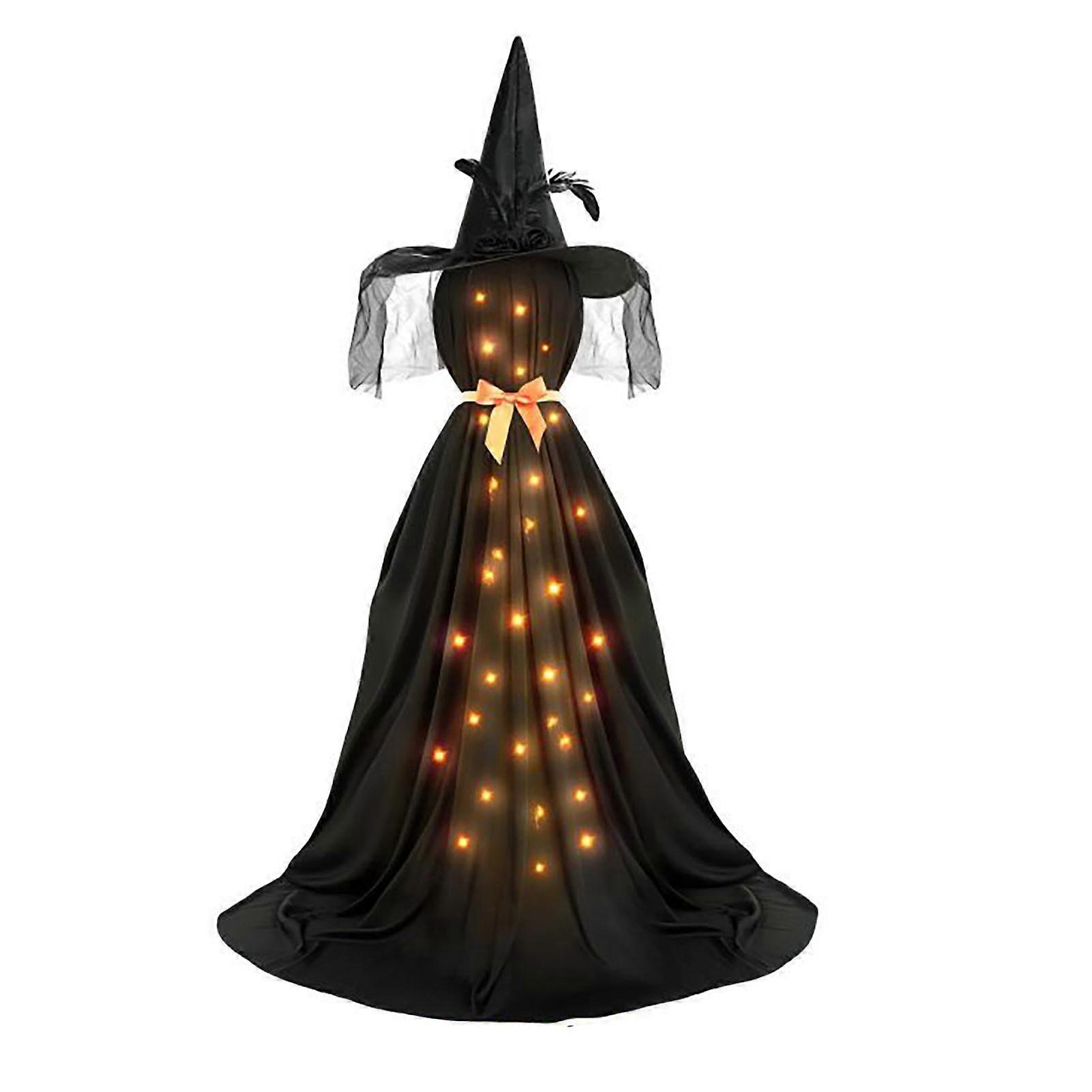 Halloween Decorations Outdoor Indoor Spooky Black Ghost with Witch Hat Standing Glowing Ghost with String Light for Porch Yard Garden Home