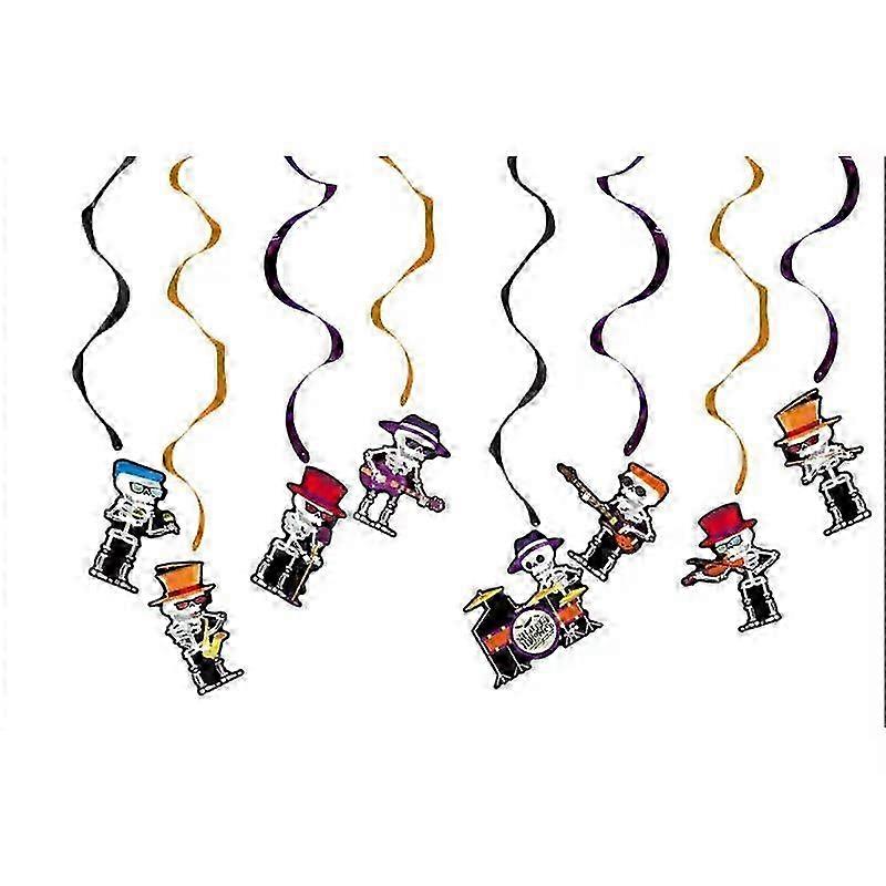Halloween Skull Design Hanging Streamers - 1 Set of Shengjing Swirl Plafion & Crull Skull Concert Flags for Spooky Decor & Party Props