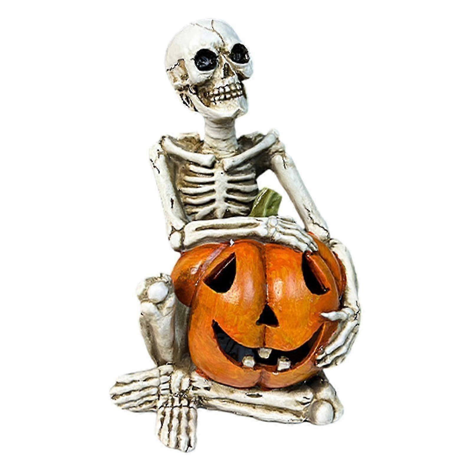 For Halloween Skull Ornament Spooky Resin Skeleton Pumpkin Bauble Ornament For Home Halloween Decoration Y