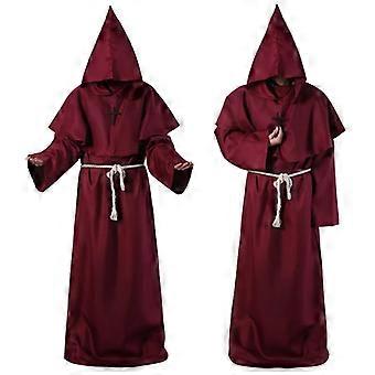 Halloween Wizard Costume Cosplay Medieval Hooded Robe Costume Monk Friar Robes Priest Costume Ancient Clothing Christian Suit