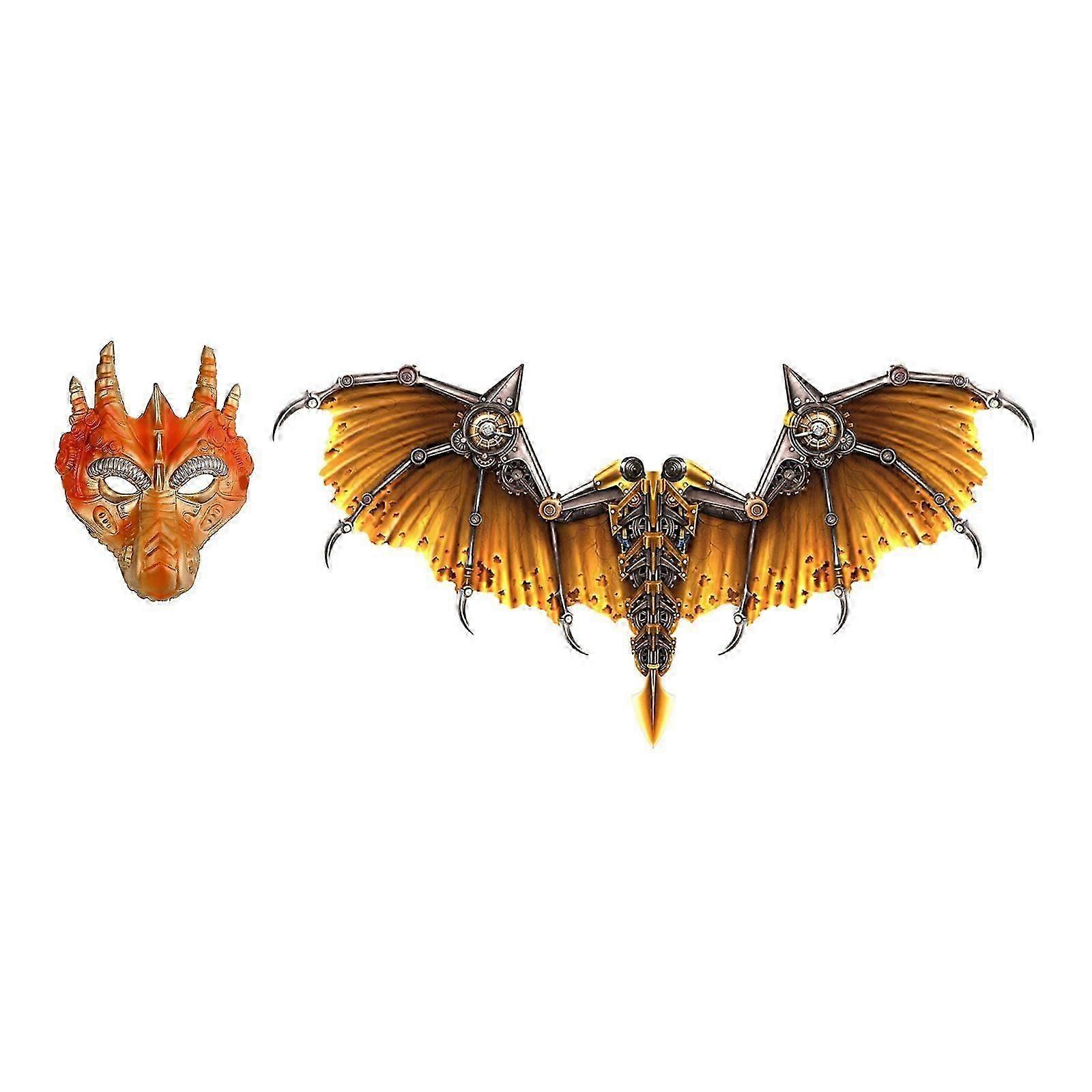 Halloween Adult Dragon Costume Wing Mask Set Non Woven Fabric Wing Elastic Shoulder Strap Sturdy Dress up Props for Carnivals Dancing Party