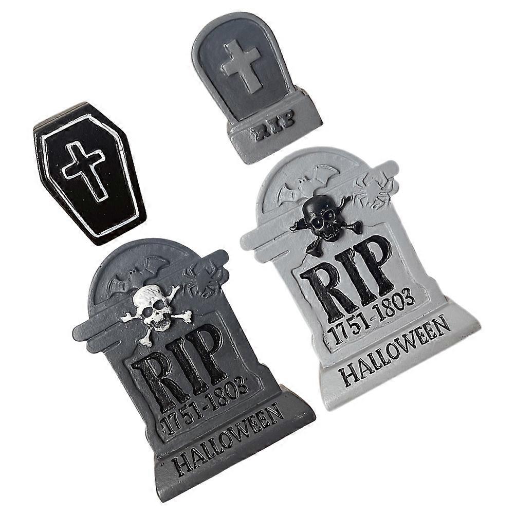 The tombstone decor is crafted in resin material for long time use. Decorative tombstone makes a really eerie Halloween atmosphere. Fine workmanship creates good item with clear shape, it looks like a real tombstone that can be a special decor for your party. Features -Color:Assorted Color -Material:Resin -Size:6.60X5.00X2.00cm/2.59X1.97X0.79in -Size:6.60X5.00X2.00cm/2.59X1.97X0.79in -Size:3.00X2.20X1.00cm/1.18X0.86X0.39in -Size:3.30X2.20X1.00cm/1.30X0.86X0.39in - Well-made of light resin materials, safe and easy to move, also for using time. - Can be used in haunted house, secret room, Halloween themed restaurant, etc. - Looks like a real tombstone that can be a perfect decor for your Halloween party to add creepy breath. - Realistic shape, strong smell of terror, it can create a horror atmosphere, the perfect Halloween decoration prop. - You can place this tombstone decor in your garden, yard or lawn to scary your guests. Package list: 4 x Halloween Ornaments (4 Styles)