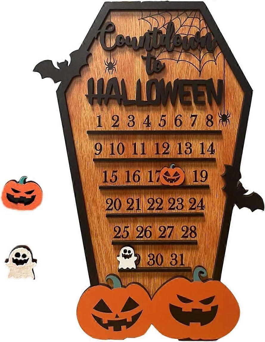 Halloween Countdown Calendar, 3D Wooden Halloween Advent Countdown Calendar Coffin Calendar Moving Wooden Block To Count