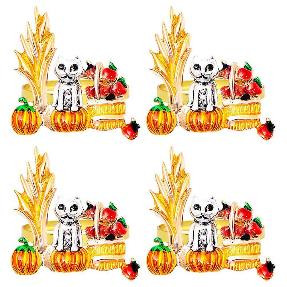 Halloween Pumpkin Cat Napkin Buckle Golden Metal Dining Table Accessory 3.3X3.3X3.3CM 4Pcs