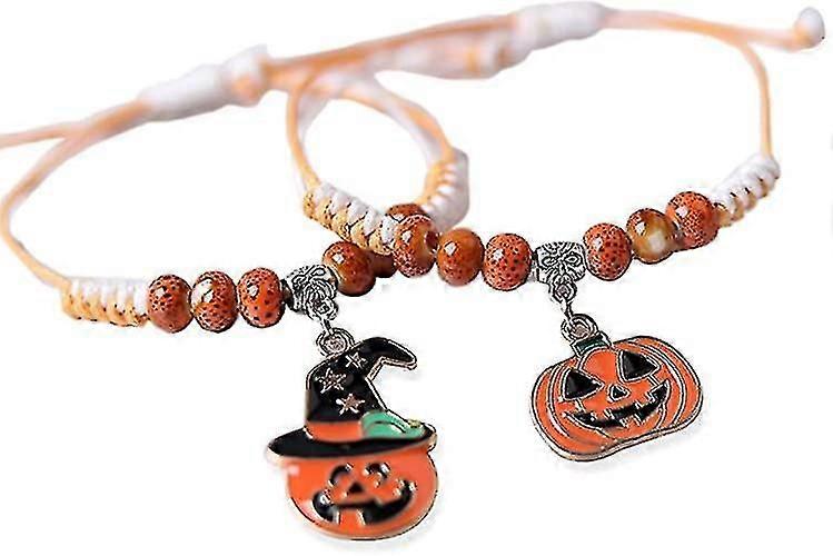 Halloween Pumpkin Braided Bracelet Cute Pumpkin Pendant Beads Dainty Handmade Rope Chian Adjustable Bangle Bracelet Halloween Jewelry uu