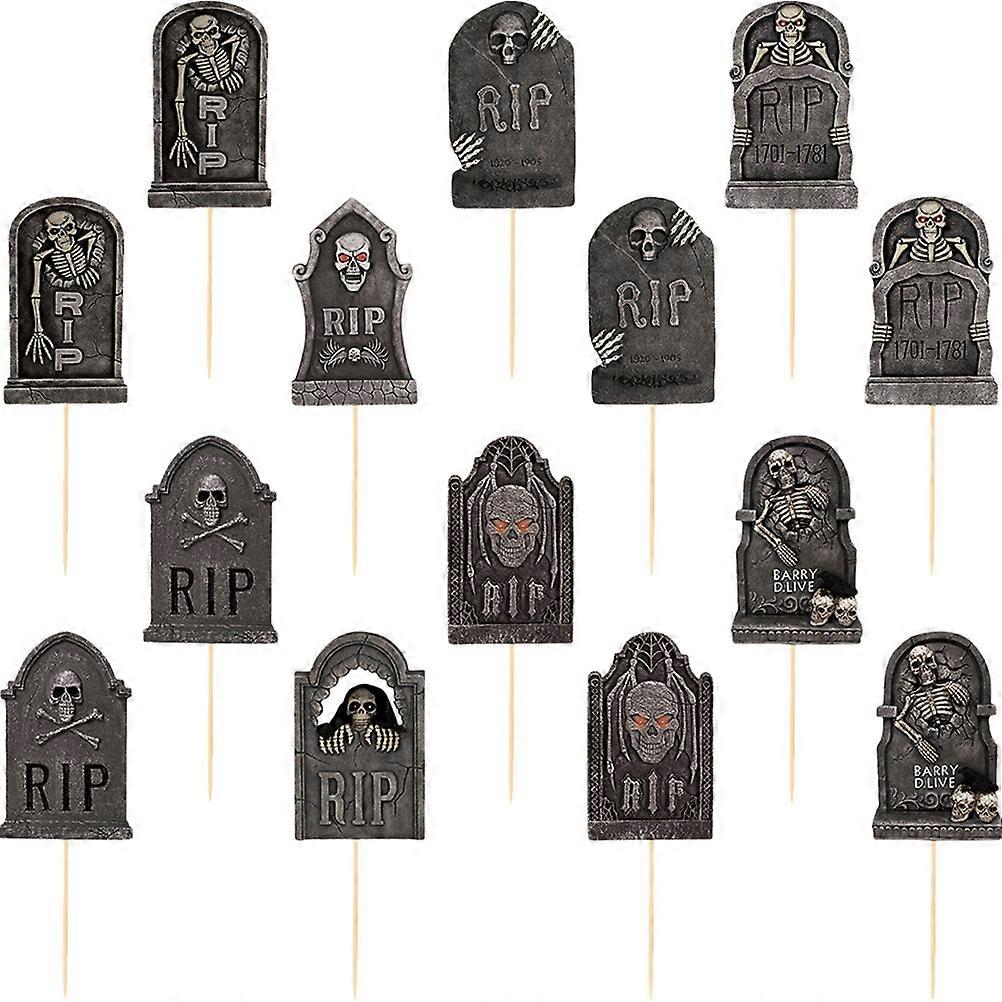 Halloween Cake Decorations Tombstone Cupcake Toppers for Cake Cupcake Dessert Assorted Color Paper Wood 64Pcs