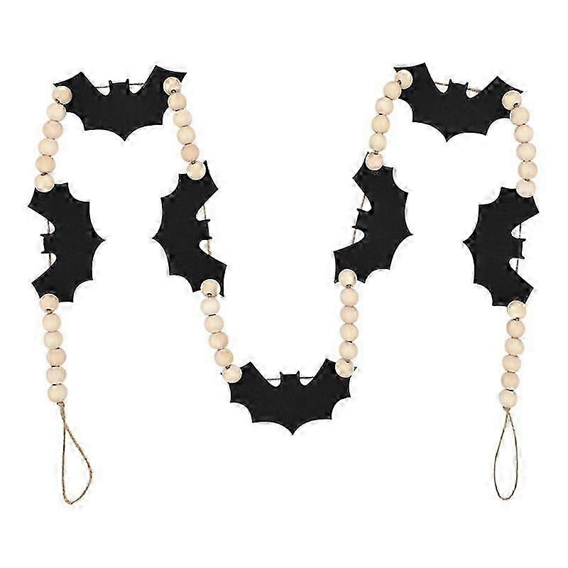 Halloween Bats Garland Decorations Black Felt Bats Wood Bead Banner Halloween Banner For Doorway Wall Front Door Outdoor Indoor