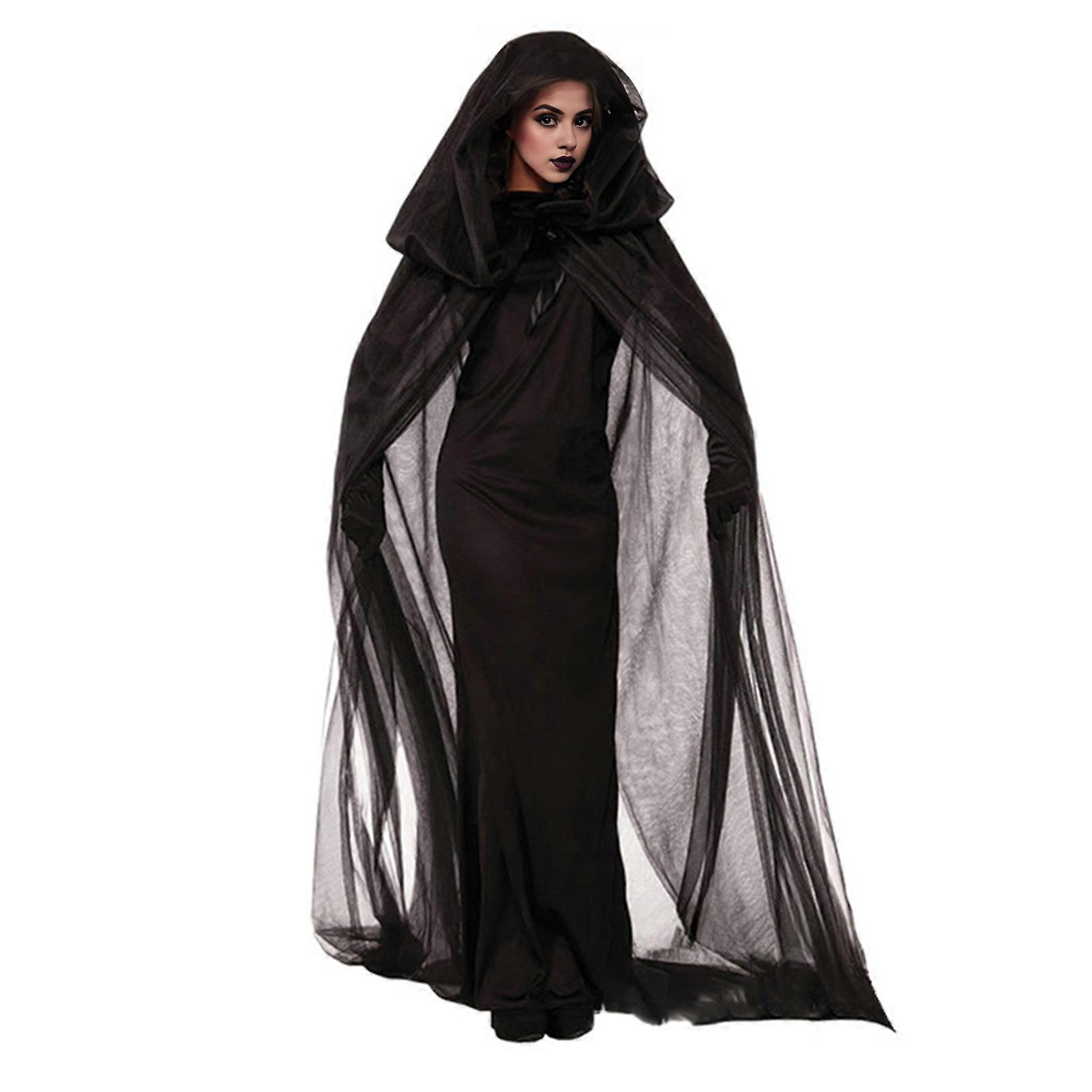 Halloween Costume Dark Witch Ghost Bride Women Dress Black Gauze Maxi Dress Horror Demon Costume for Halloween Costume Party Stage Show