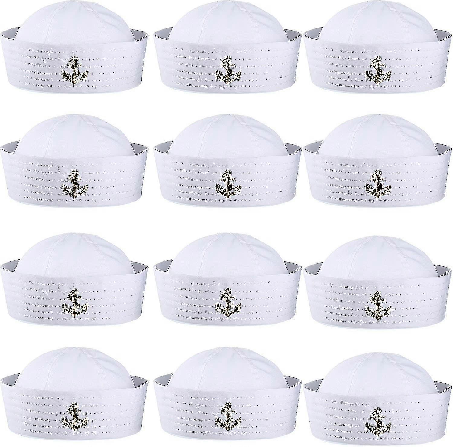 12Pc White Sailor Hat for Halloween Costume Adult Party Dress Up Yacht Nautical