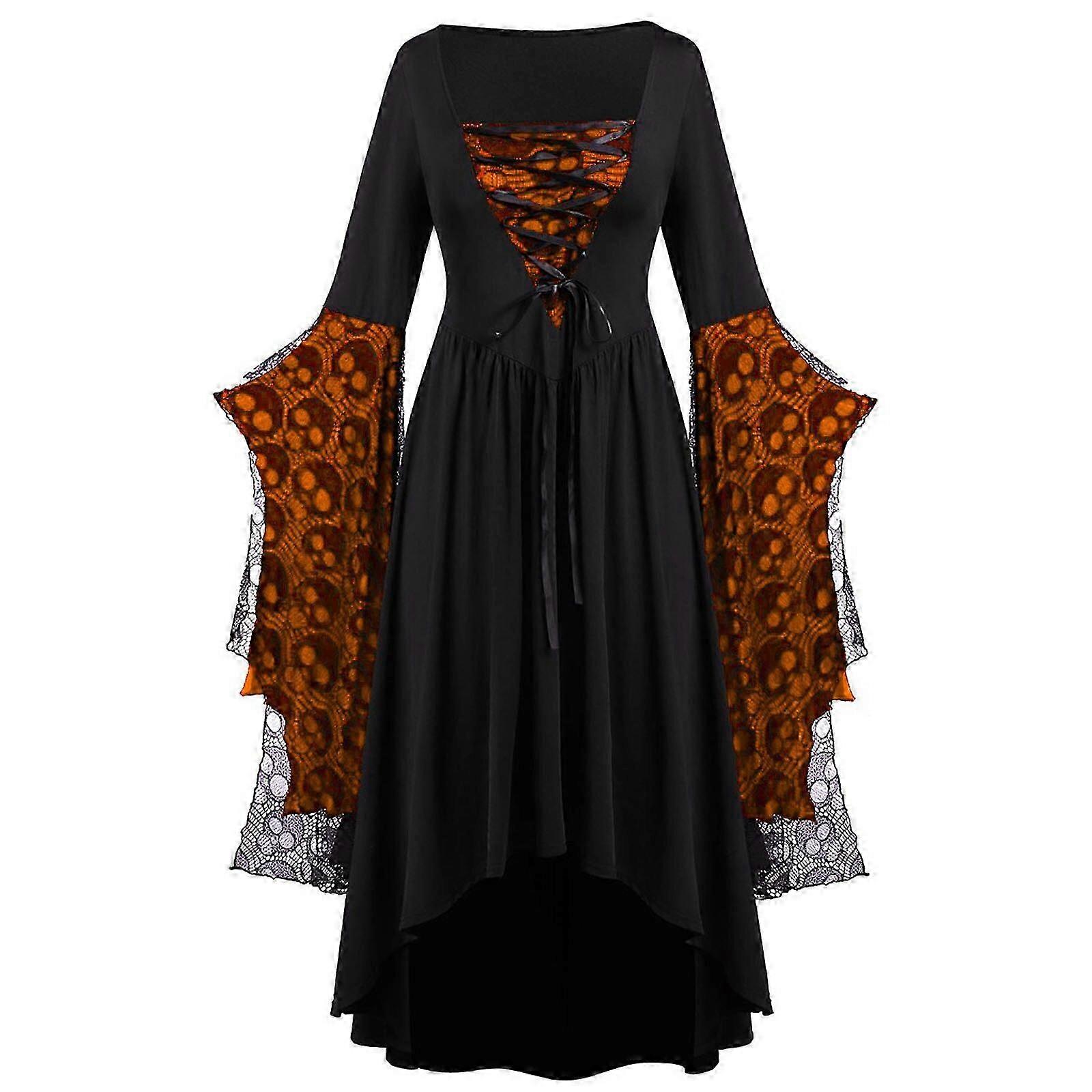 Halloween Cosplay Costume Gothic Vintage Dress Ghost Pumpkin Printed Dresses Medieval Ghost Bride Vampire Clothing Women