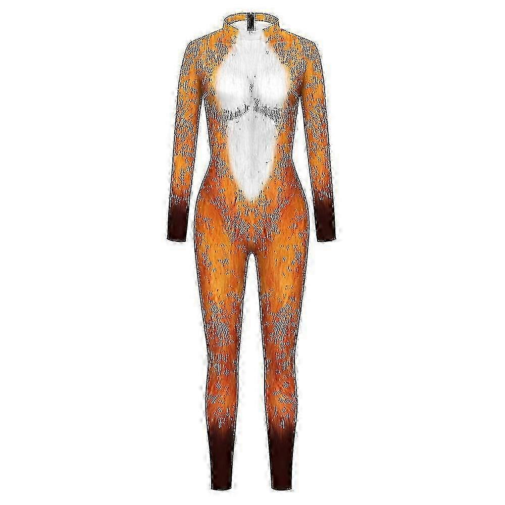 Halloween Cosplay Fox Costumes Suit Fashion 3d Animal Leopard Print Women Costume Jumpsuit Sexy Bodysuits