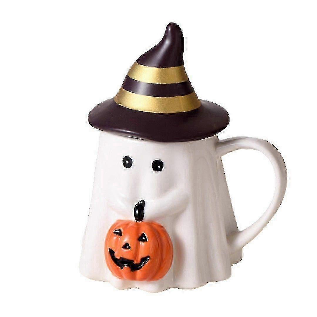 Halloween Coffee Mug, Cute Ceramic Ghost Pattern Coffee Mug, White Pumpkin Ghost Mugs, Cute Handmade Halloween Gifts for Kids Adult