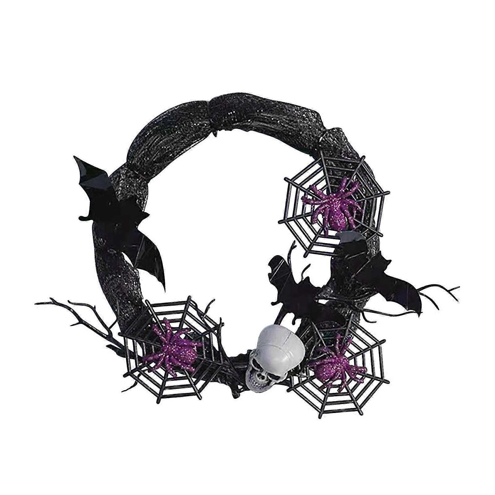 Halloween Simulation Black-bat Poison Spider Wreath Decoration Rattan Wreath Front And Rear Door Wall Hanging Festive Pendant Wreath
