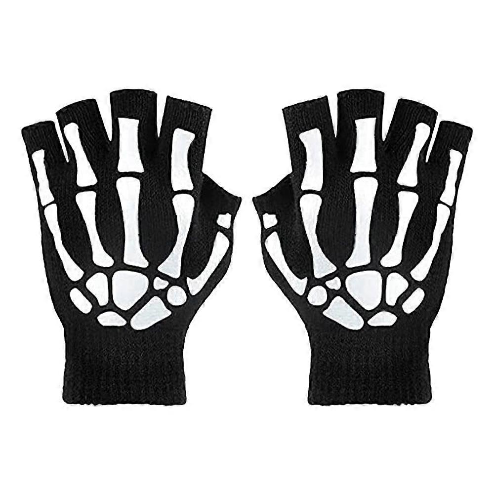 1 Pair of Halloween Skeleton Gloves Party Luminous Gloves Knitted Fingerless Gloves Winter Warm Gloves