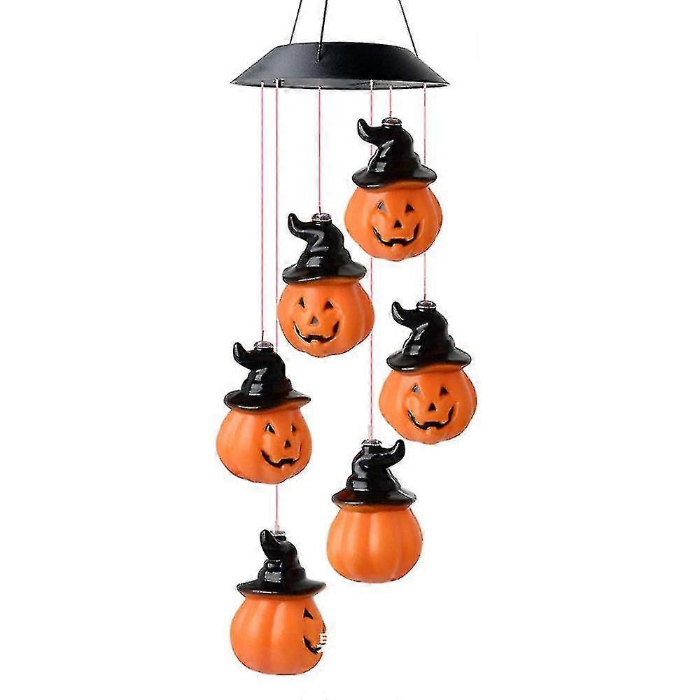 Pumpkin wind chime is solar powered design, energy saving and eco-friendly. It has not wiring or external power supply, automatic charging during the day and lighting up at night. The wind chime is also equipped with sensitive light sensor so that it can automatic light up when it gets dark.