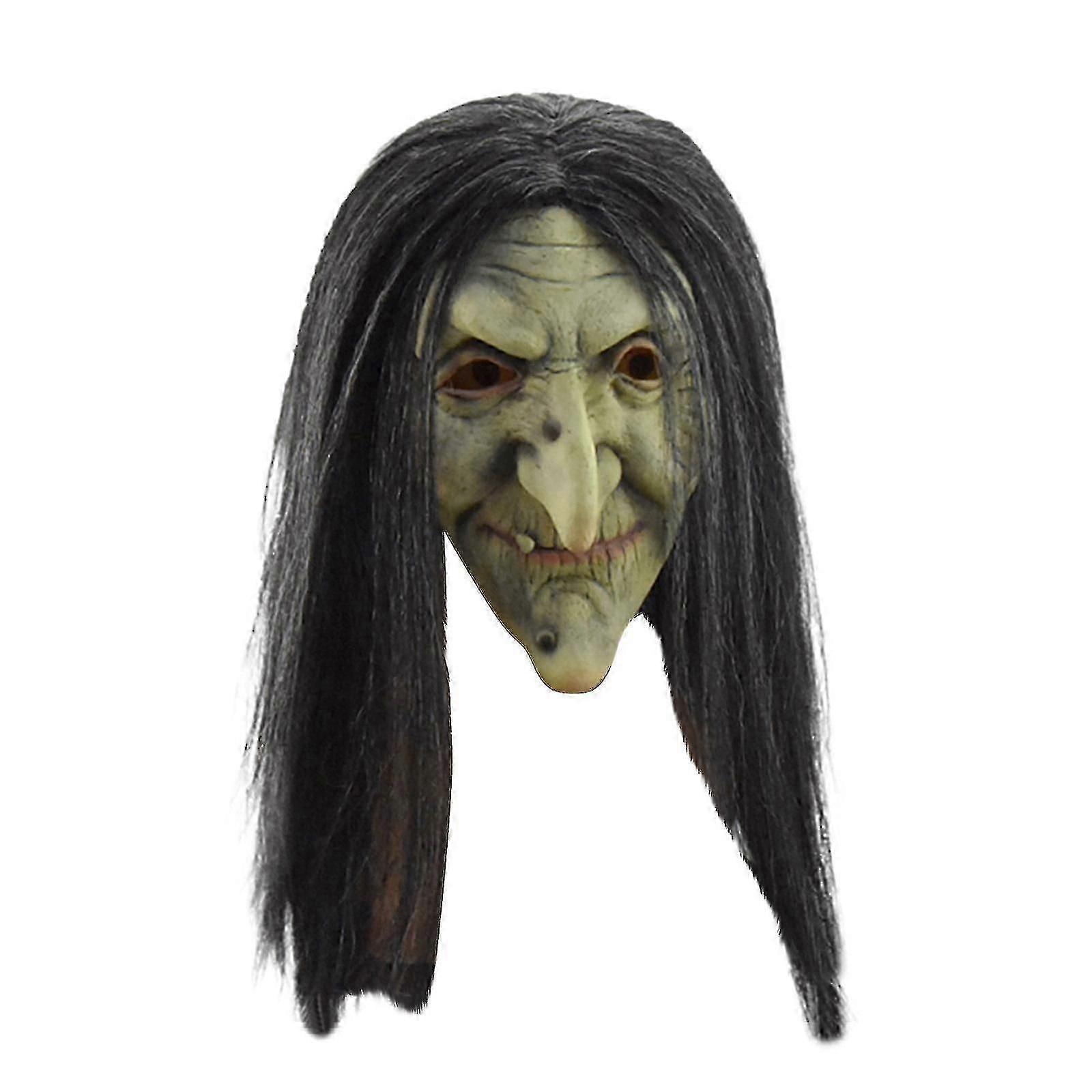 Halloween Decorations Old Woman Witch Mask Green Face Halloween Creepy Scary Horror Cosplay Costume