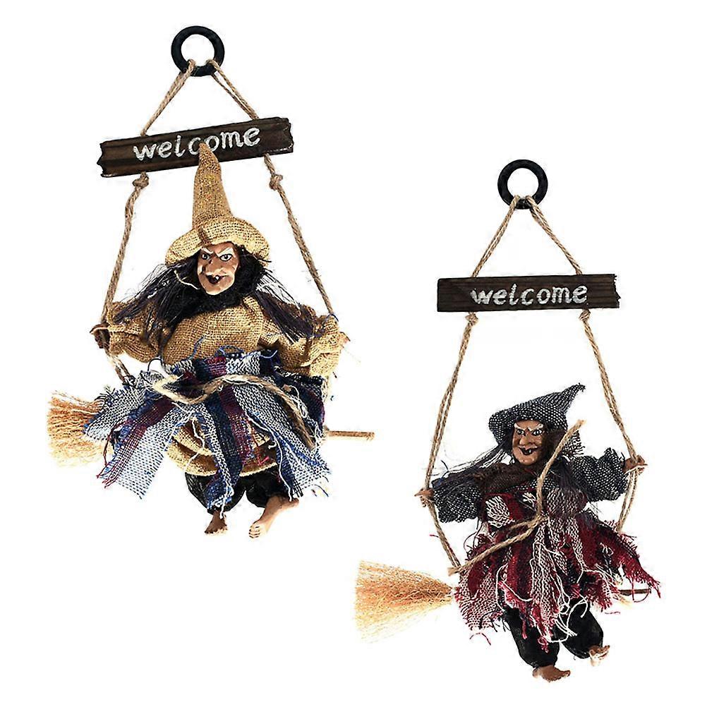 Halloween Decorations Witch Broom Hanging Pendant Halloween Party Wood Plastic Cloth for 2Pcs