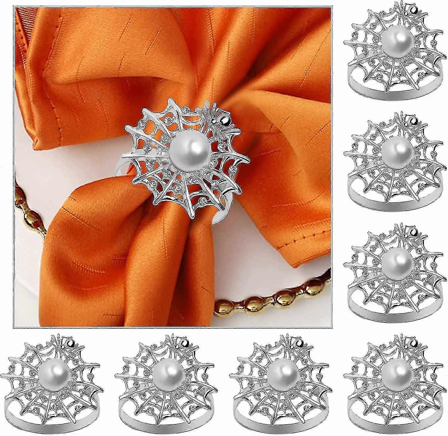 Halloween Napkin Rings Set Of Acsergery 8 Silver Pearl Napkin Rings Diamond Spider Napkin Gift