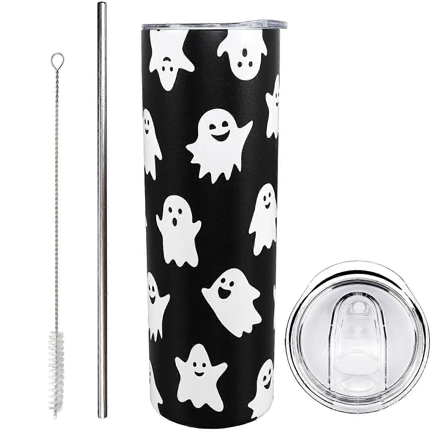 1.Ctue gift: Our halloween tumbler cup is printed with many cute ghosts. It's great for the coming Halloween Christmas birthday 2.Premium stainless steel tumbler: Specially made from 18/8 food-grade stainless steel, the insulated tumbler is durable, easy to wash, and unbreakable. Electropolished on the inside to ensure your cups remain rust- 3.Lid and straw: The tumbler comes with a sliding splash-proof lid and a reusable straw.The stainless steel travel tumbler can keep your coffee and tea hot for 6 hours and keep ice water cold for 12 hours. Hand wash recommended 4.Serving delicious beverage: 20 ounces Capacity tumbler with a handle is easy to hold.It could satisfy your needs for hot or cold beverages such as wine, coffee, water, champagne, cocktail, smoothie, juice, milk, ice cream and so on