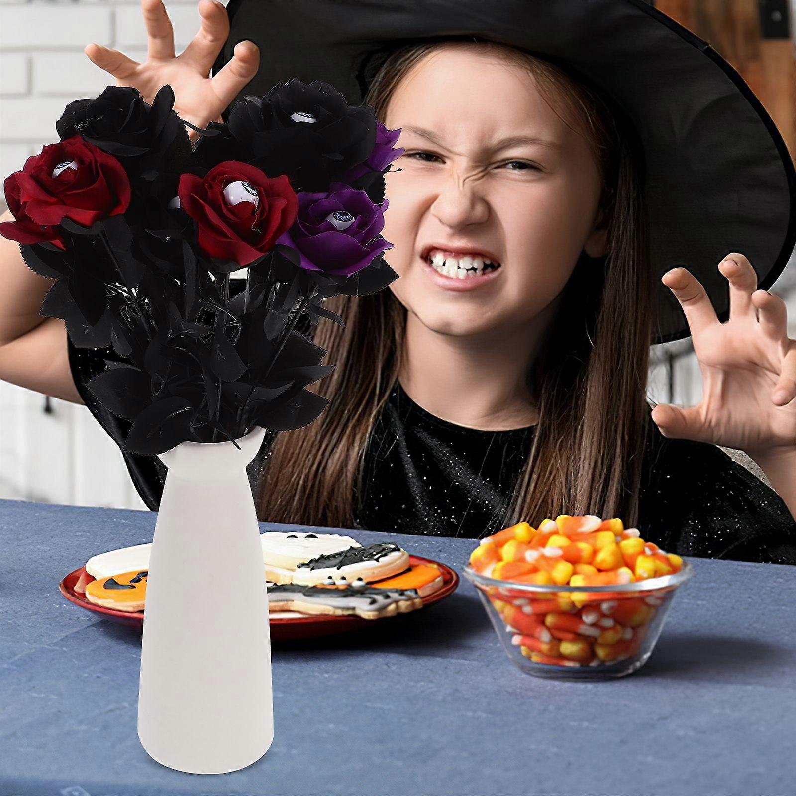 12pcs Simulation Rose Flower for Halloween Party Realistic Fake Rose With Eyeball Charm Party Favor