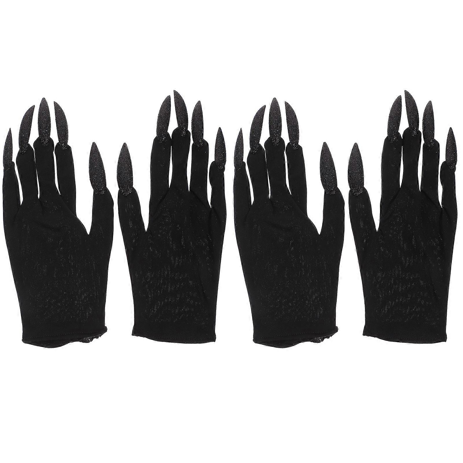 2 Pairs Masquerade Gloves for Halloween Party Costumes Creepy Fingernail Design, Fancy Ghost Witch Claw Style, Adult Size, Cloth Material