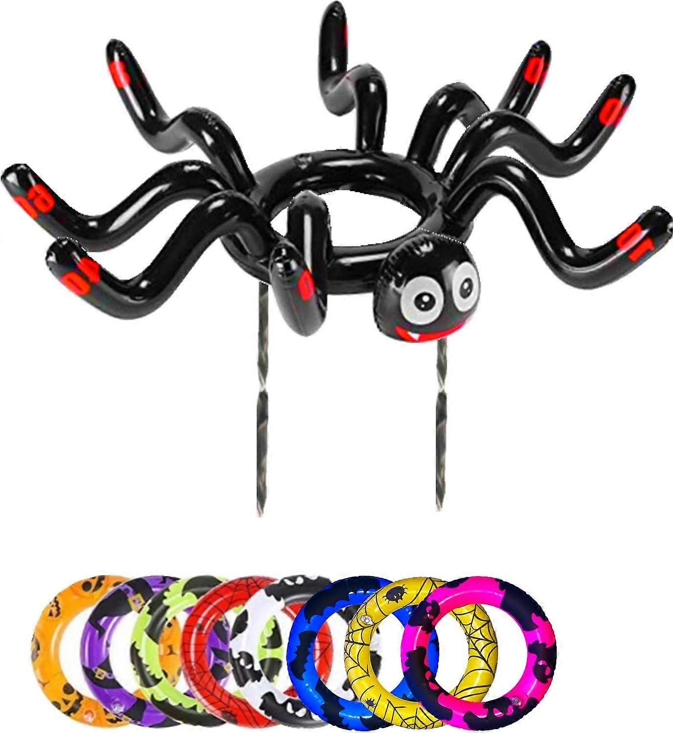 Halloween Party Spider Game Toss Ring Game With Ring Inflatable Spider Hat (1 Inflatable Spider, 8 Rings) For Kids Home Office Indoor Outdoor Garden H