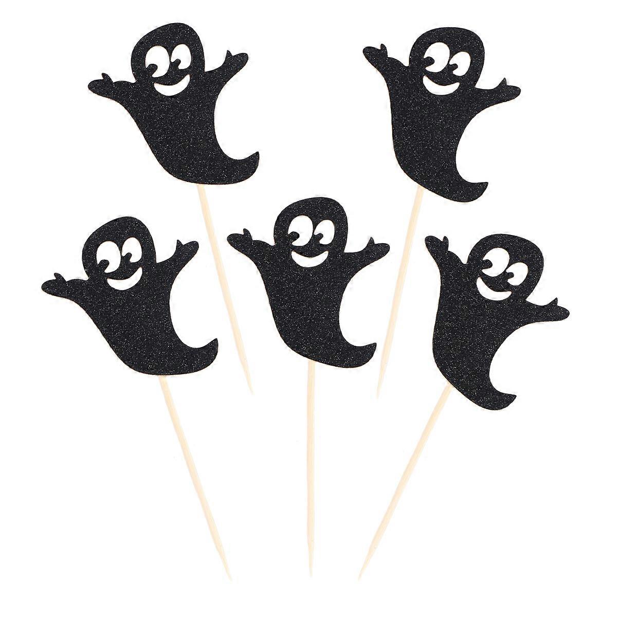 Halloween Party Picks Black Ghost Festival Fruit Dessert Picks For Cupcakes 5Pcs