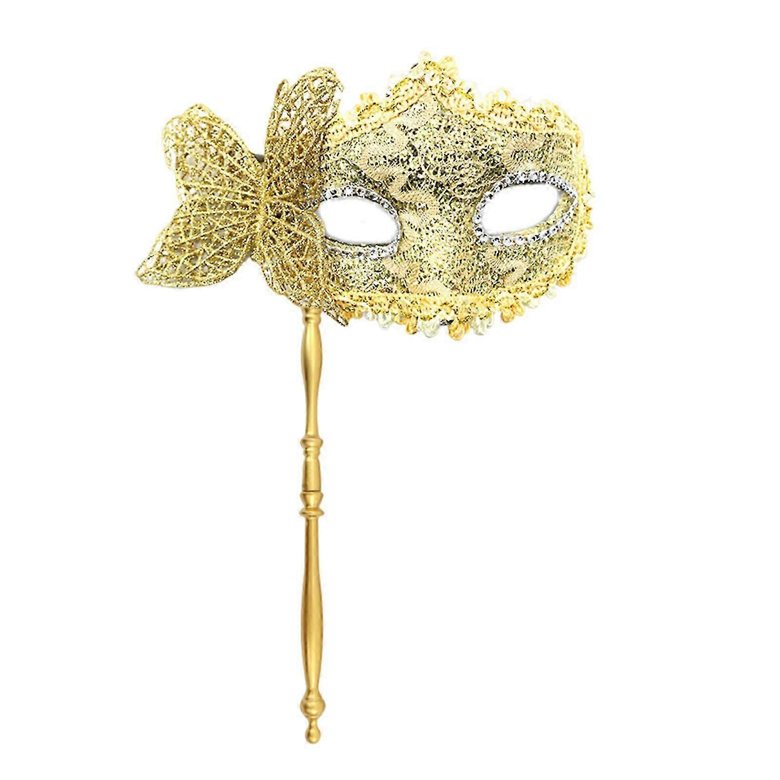 Halloween Party Mask with Pin, Elegant Venetian Butterfly Half Face Mask for Masquerade and Prom, Black and Gold Color