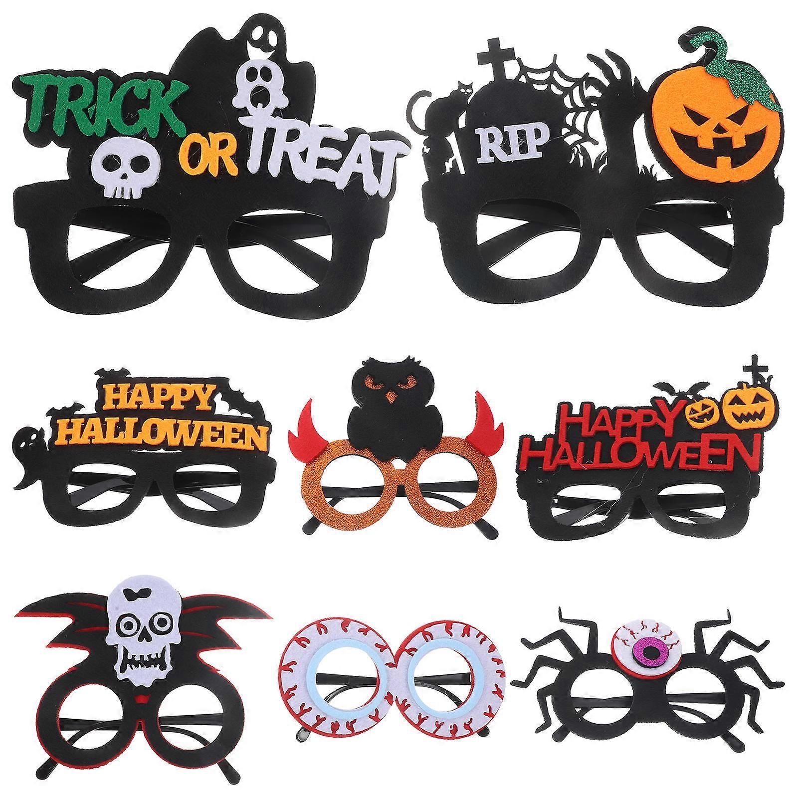 Halloween Party Eyeglasses 8pcs Funny Photo Props with Eyeball, Skull, Owl, Letter, Bat, and Pumpkin Designs for Themed Celebrations