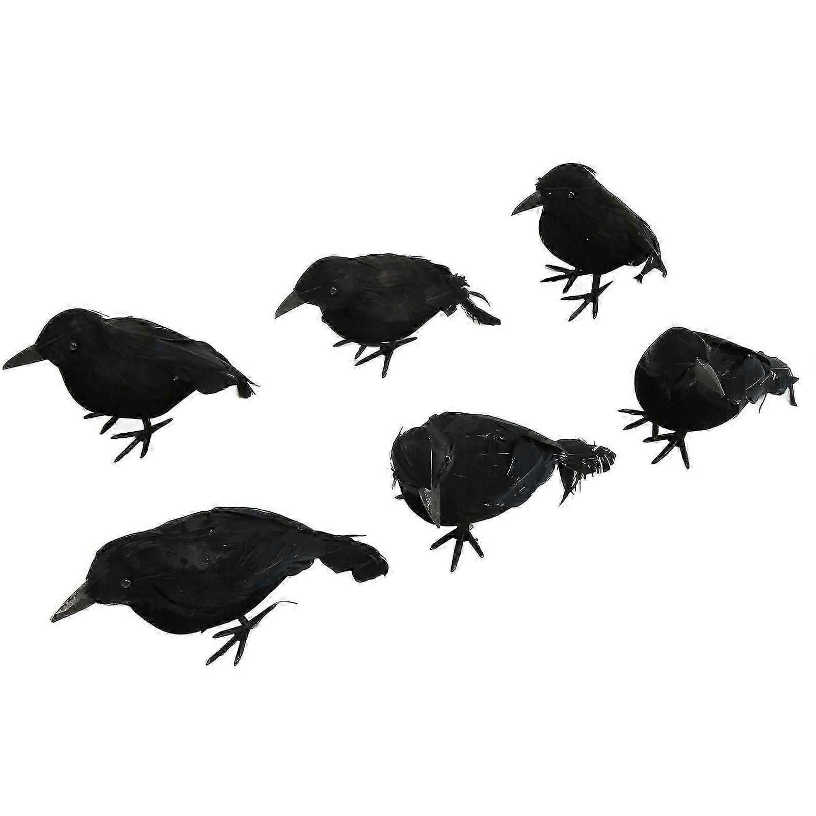 Halloween Black Feather Crows 6pcs Realistic Simulation Birds Indoor Outdoor Decorations