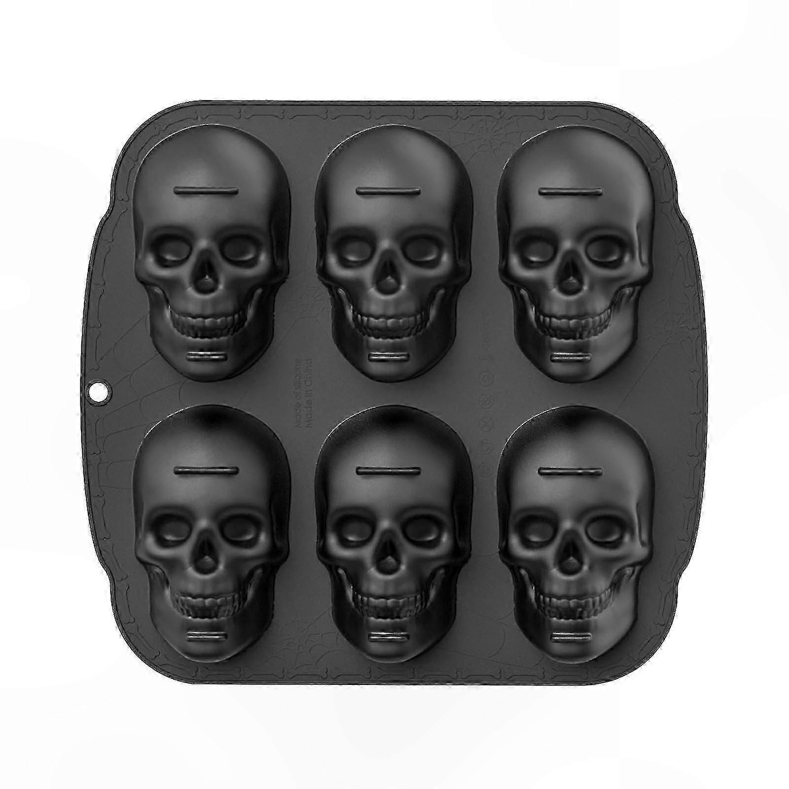 Silicone Skull-Shaped Cake Mold for Halloween Baking, 6-Piece Set, Large Size for Creative Desserts