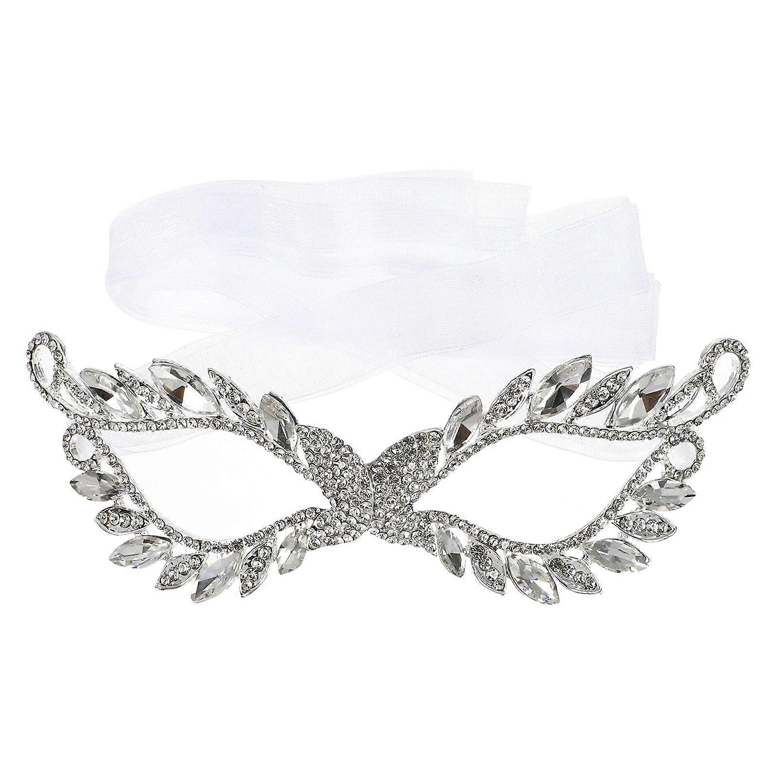 Halloween Mask Costume Rhinestone Masquerade Mask Half Face Cover White 16.2X5.7CM For Adults Halloween Party