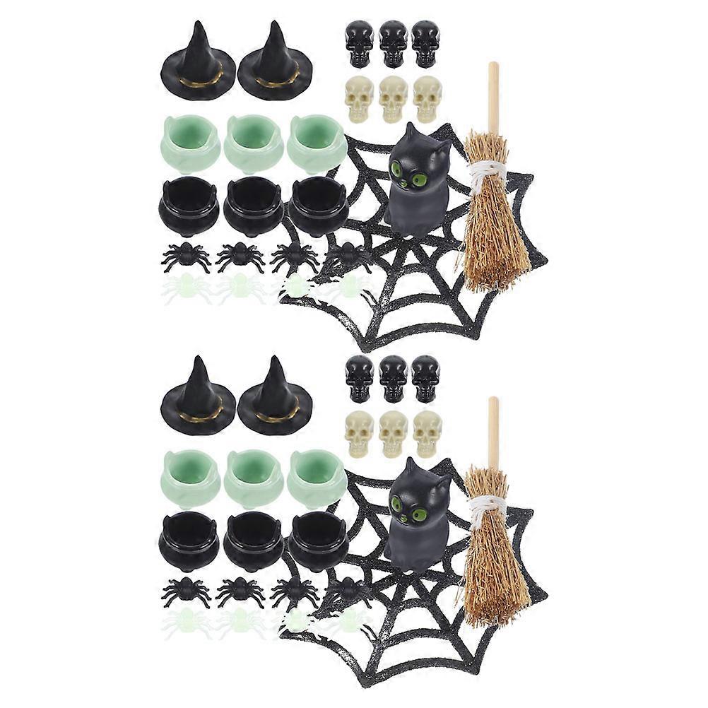 Halloween Miniature Figurines Set Plastic Skulls & Witches for Dollhouse Accessories, Party Decorations & DIY Crafts