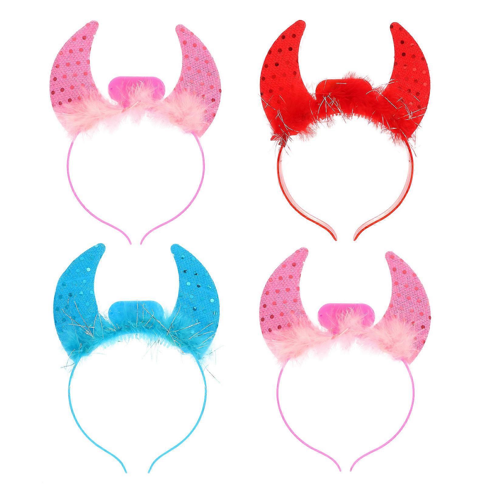 Halloween Luminous Ox Horn Headband Lightweight Party Cosplay Headdress for Masquerade Role Play Carnivals Random Color 4pcs