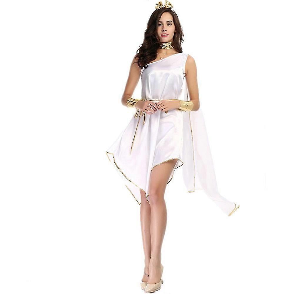 Halloween Roman Princess Outfit Women Roman Toga Robe Greek Goddess White Loose Irregular Fancy Dress