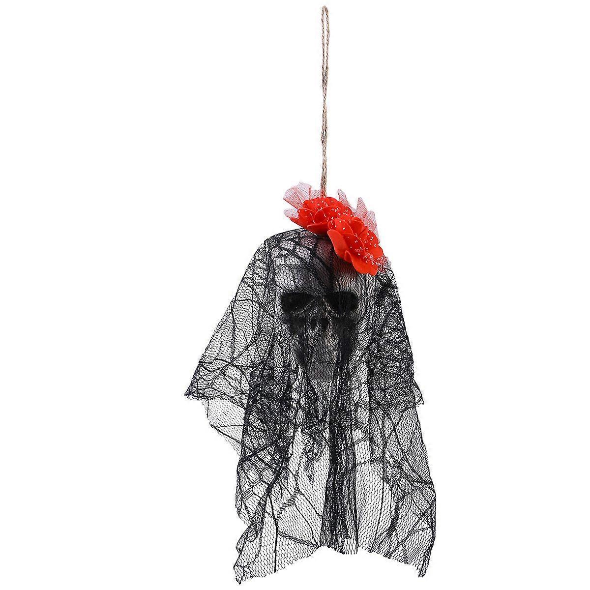Halloween Creepy Scary Hanging Skull Skeleton Ghost Halloween Home Garden Yard Bar Decorations Party Supplies Haunted House Props (Red Flower)