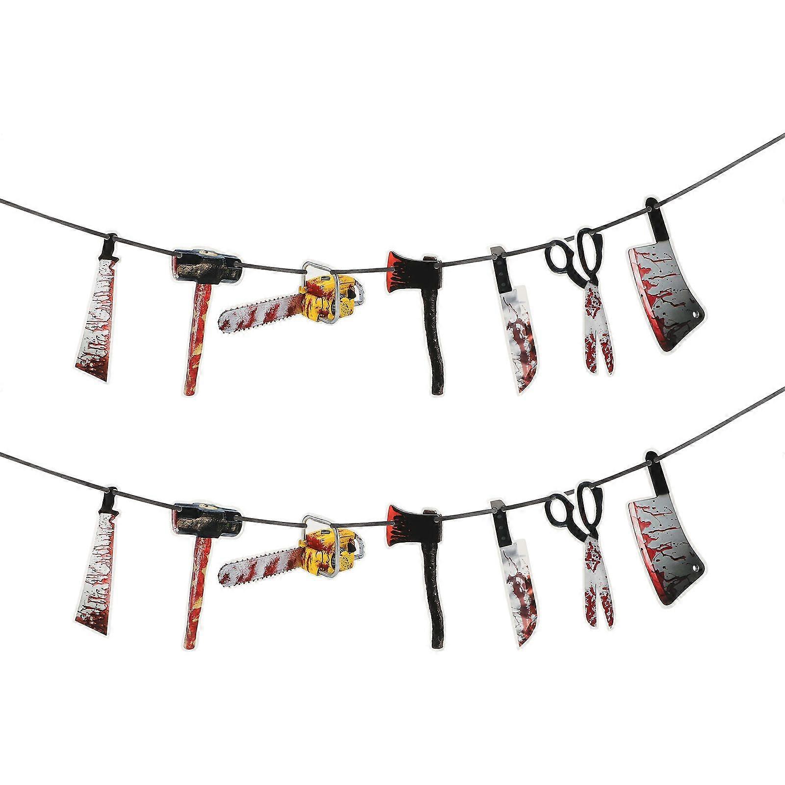 2 Sets of Halloween Hanging Flags Bloody Tools Paper Flags Pendant Festival Banners