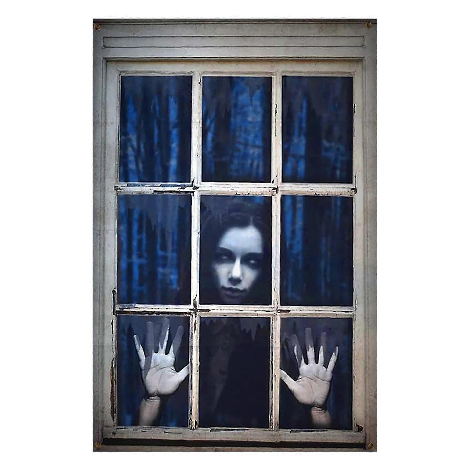 Halloween Scary Window Cover Horror Female Ghost Window Curtain Indoor Outdoor Party Haunted House Window Door Decoration Poster