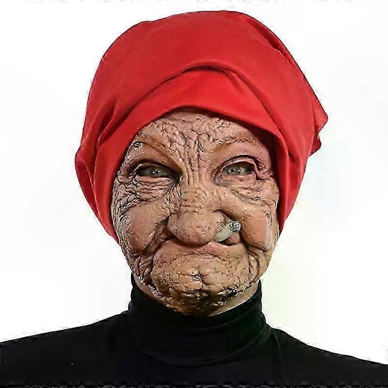 Realistic Elderly Woman Latex Mask for Halloween, Full Head Scary Costume Accessory with Wrinkled Face Design for Cosplay and Horror Events